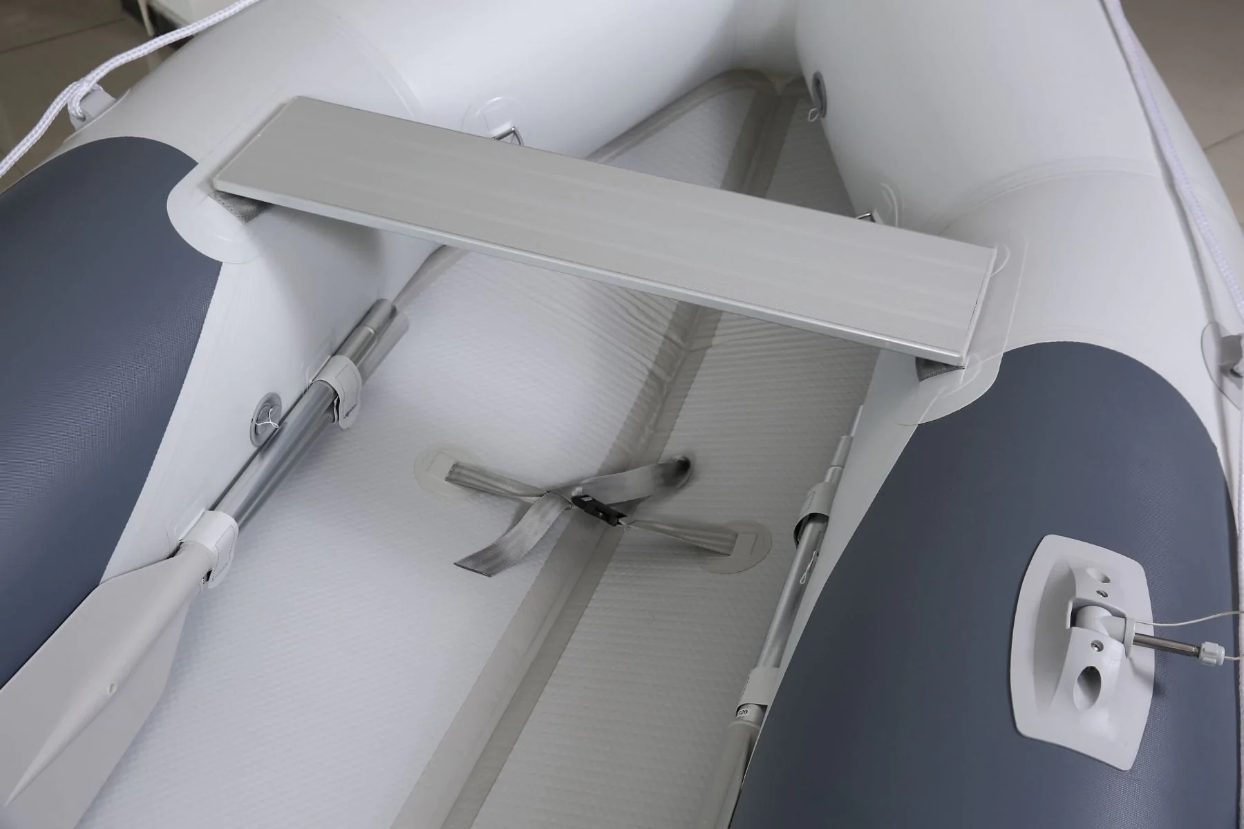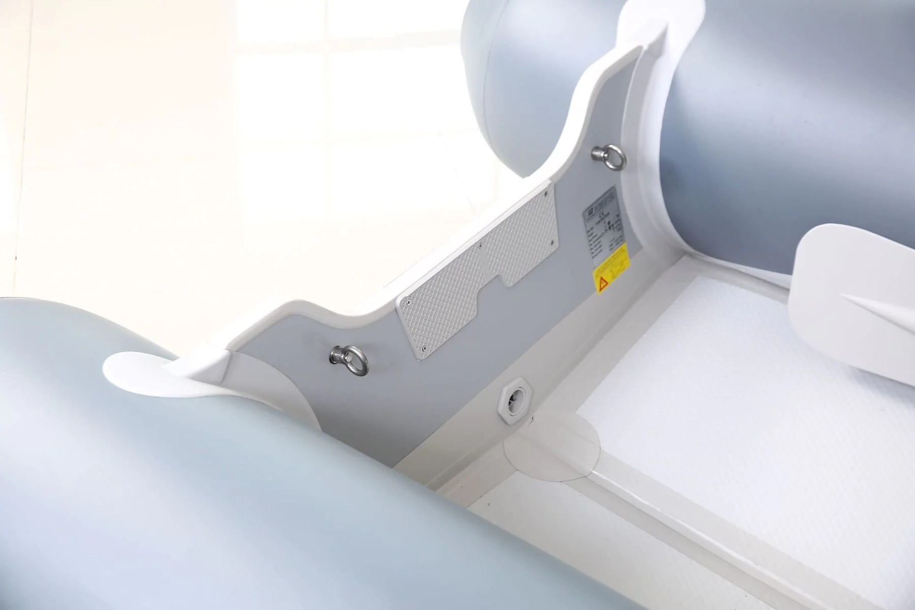La conception de cette annexe Fun II 230VB offre un plancher en V rigide et gonflable avec flaps arrières lui apportant une excellente stabilité pour les déplacements rapides au moteur, annexe chargée ou non.