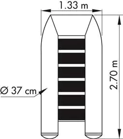 - Dimensions hors tout : 270 x 133 x 38 cm