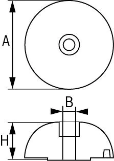 | Ø A (en mm) | Ø B (en mm) | H (en mm) |