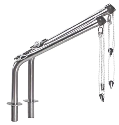 Le modèle 160 kg comprend : 2 bossoirs de tube 60 mm, 4 poulies, 4 mousquetons et 4 x 3 m de cordage.