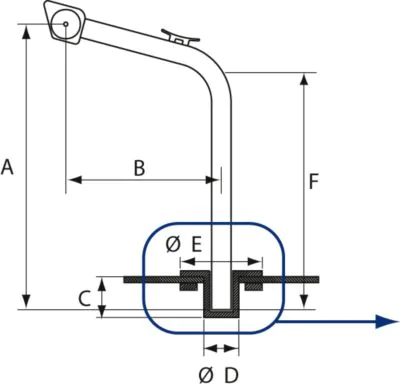 Les bras des bossoirs sont fixés en position lors de l’utilisation, mais sans facteur de charge appliqué, ils sont pivotants et rabattables.