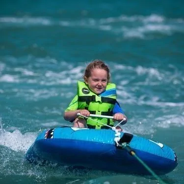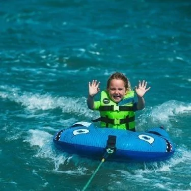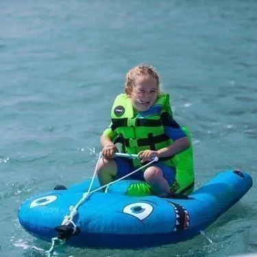 La shark trainer de Jobe assure la traction d’1 personne maximum. Son design est approprié pour les enfants, et son look est synonyme d’amusement et de plaisir. Le nez arrondi et étendu protège mieux l’utilisateur. La bouée dispose d’une poignée détachable pour faciliter le maintien du petit passager.