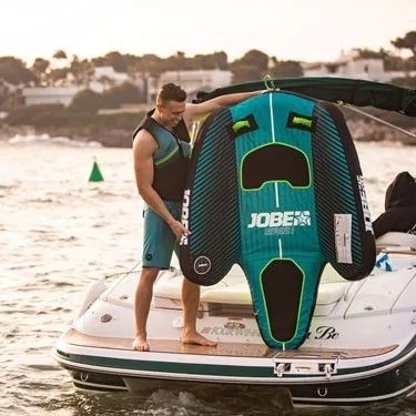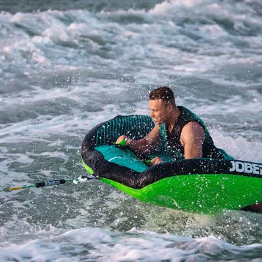 Cette bouée est le modèle pour une personne maximum de la gamme Revolve de Jobe. Elle est équipée de 2 poignées en Néoprène avec protège-articulations afin de garantir adhérence et confort. Cette adhérence est renforcée par les 2 deck pads en néoprène qui garantissent la stabilité de l’utilisateur. La Revolve possède aussi une forme hydrodynamique faite pour la vitesse. Les flancs surélevés permettent au passager de ne pas être renversé sur les cotés.