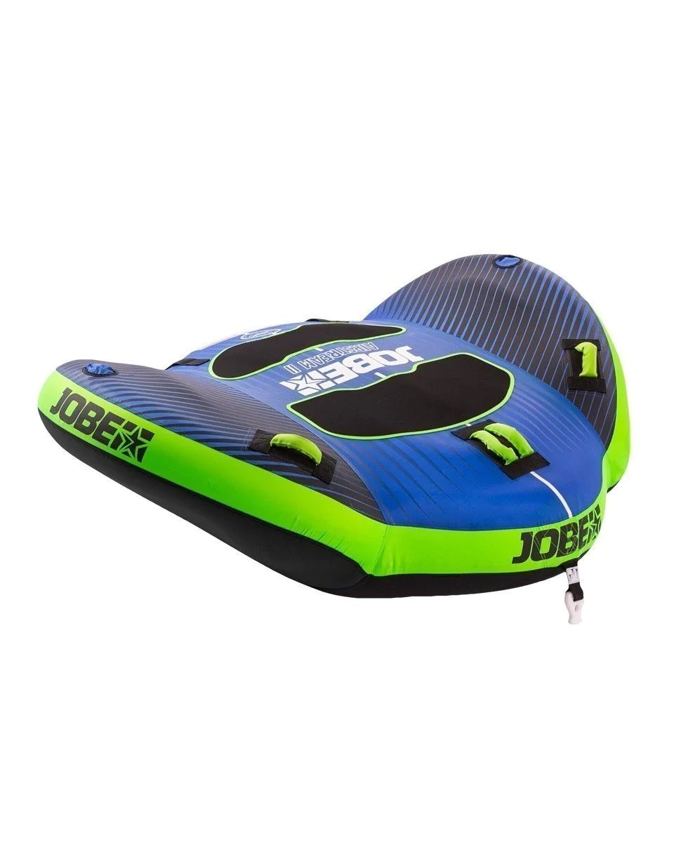 La Bouées tractées Airstream 2 à 4p Jobe est faite pour accueillir 2, 3 ou 4 personnes selon le modèle. Les 4 poignées avec protège-doigts en Néoprène sont placées stratégiquement pour garantir un maximum de sensations. La forme dynamique avec des côtés surélevés donnent l’impression de voler au dessus de l’eau. 2 coussinets en Néoprène permettent une meilleure accroche pour les utilisateurs.