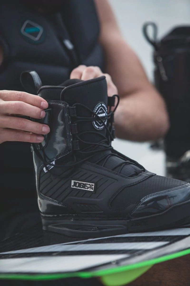 Le système de blocage de lacets sur mesure Jobe permet de sécuriser le porteur durant la session. C’est la chausse Wakeboard parfaite pour ceux qui désirent des réceptions en douceur et un soutien sérieux du pied. Etant fermées, ces chaussures sont plus rigides et sont destinées aux riders experts ou intermédiaires. Idéales pour le Wakepark car elles évites de se blesser aux orteils, mais elles peuvent aussi être utilisées pour du Wake Bateau.