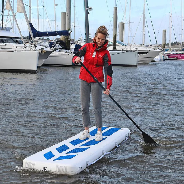 Ajoutez les 2 ailerons escamotables et transformez votre plateforme Plastimo en stand up paddle, annexe d’appoint ou plateforme pour l’entretien du bateau. Avec ses dimensions gĂ©nĂ©reuses, la plateforme devient un paddle avec lequel il est facile et confortable de naviguer.