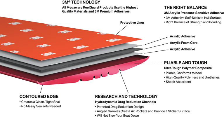 La Protection d’étrave KeelGuard Megaware est une bande autocollante anti-ragage à coller sous l’étrave de votre annexe, bateau polyester, semi-rigide ou jet-ski.