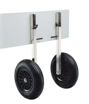 Cet accessoire pour annexe possède des roues increvable ainsi que des montant se relevant permmettant ainsi de n’entraver en aucun cas le débattement du moteur.